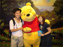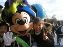 入園直後に出会ったぷーさんに大興奮 | シンデレラ城をバックに | セイラーの衣装をまとったミッキーと! |